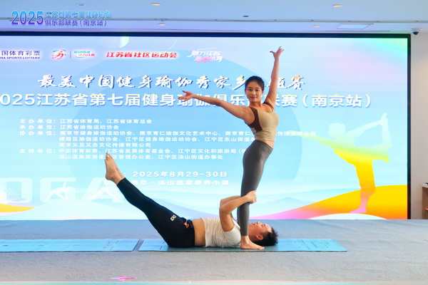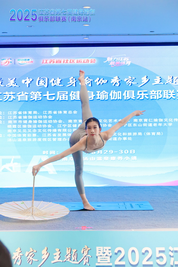8月30日上午9时,2025江苏省第七届健身瑜伽俱乐部联赛(南京站)在南京汤山温泉康养小镇隆重开幕。开幕式上,14支代表队的146名瑜伽爱好者齐聚一堂,以一场“力与柔”的盛宴拉开赛事帷幕。